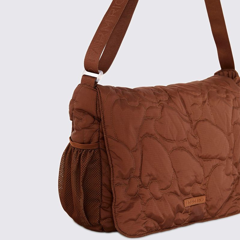 O design da Bolsa Brisa se destaca por seu formato amplo e funcional, ideal para carregar itens essenciais para o trabalho, estudo ou passeios. O acabamento Puffer confere uma textura macia, um toque moderno e um volume de estilo. A cor Marrom é sofisticada e fácil de combinar, perfeita para um visual mais neutro. O material em Poliester garante que a bolsa seja leve, resistente e fácil de limpar. Com seu volume de 13 Litros, ela oferece um compartimento principal espaçoso. A alça transversal ajustável garante conforto e praticidade no transporte, deixando as mãos livres.