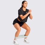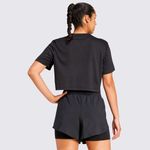 O design "Essentials" para treino se destaca pela composição de materiais que oferece leveza, secagem rápida e sustentabilidade (devido ao poliéster reciclado). O Formato boxy é a principal característica, proporcionando um caimento mais solto, moderno e que permite total liberdade de movimento durante o exercício. A cor Preto clássica é versátil e atemporal. A tecnologia do tecido garante que a camiseta seja confortável e funcional para a prática de atividades físicas.