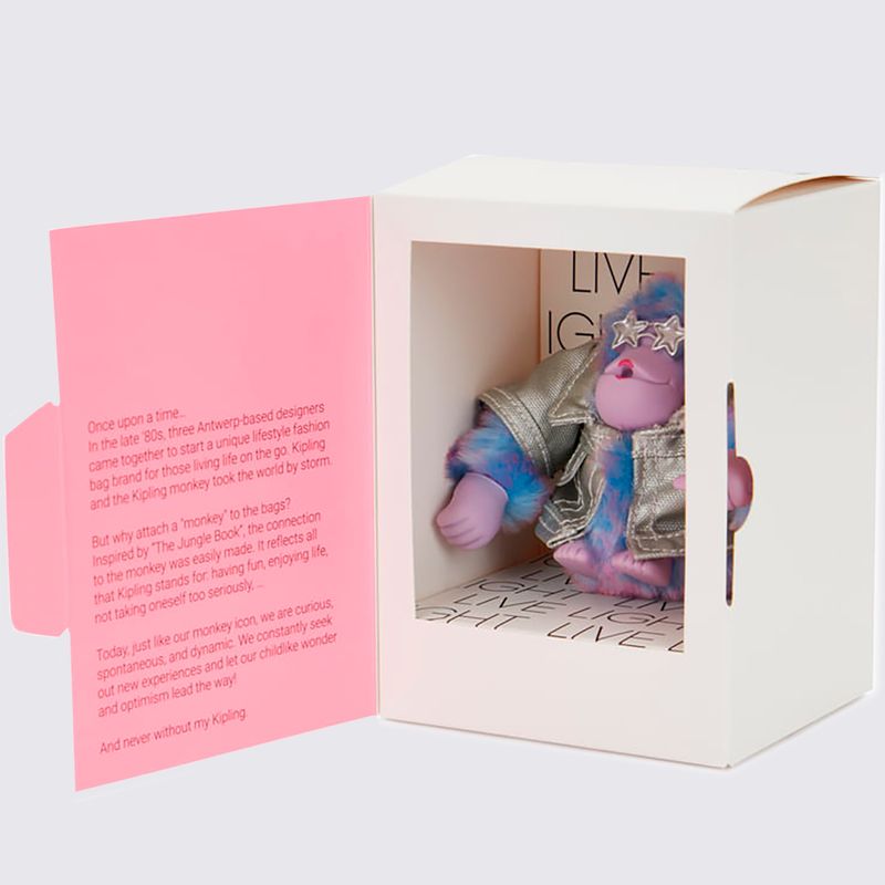 O design Disco Monkey se destaca pelo seu acabamento Peluciado, que o torna macio e agradável ao toque. A cor principal é o Prata, que reflete o tom original "Disco Lilac", um lilás metalizado ou brilhante que adiciona um toque Festivo. Confeccionado em Poliéster, o chaveiro é leve e durável. Este acessório segue a tendência Casual, sendo ideal para personalizar seus pertences com o charme característico da Kipling e um toque de glamour.