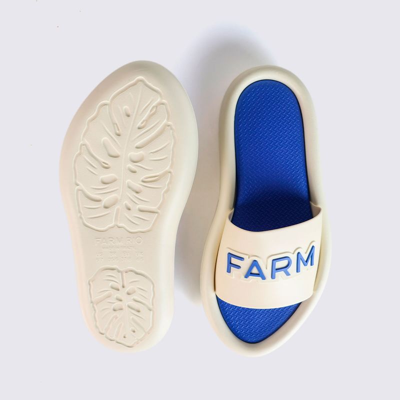 Confeccionado em PVC de alta qualidade, o Chinelo Slide Farm oferece durabilidade e resistência. A combinação de cores Off White (Ivory) e Azul Mar em um design bicolor confere um visual moderno e fresco, fácil de combinar com diversas peças do seu guarda-roupa.