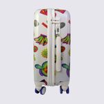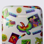O design da Mala Me Leva Rígida se destaca por sua estrutura firme que protege os pertences e seu formato compacto. A estampa "Patch Rio" é vibrante e celebra a cidade do Rio de Janeiro com elementos icônicos e coloridos, conferindo um toque moderno e autêntico sobre o fundo azul. O material em Poliester (com a rigidez da estrutura) garante que a mala seja resistente, durável e fácil de limpar. Com seu volume de 37 Litros, ela oferece um compartimento principal espaçoso e seguro, além de contar com rodinhas e alça retrátil para facilitar o transporte.