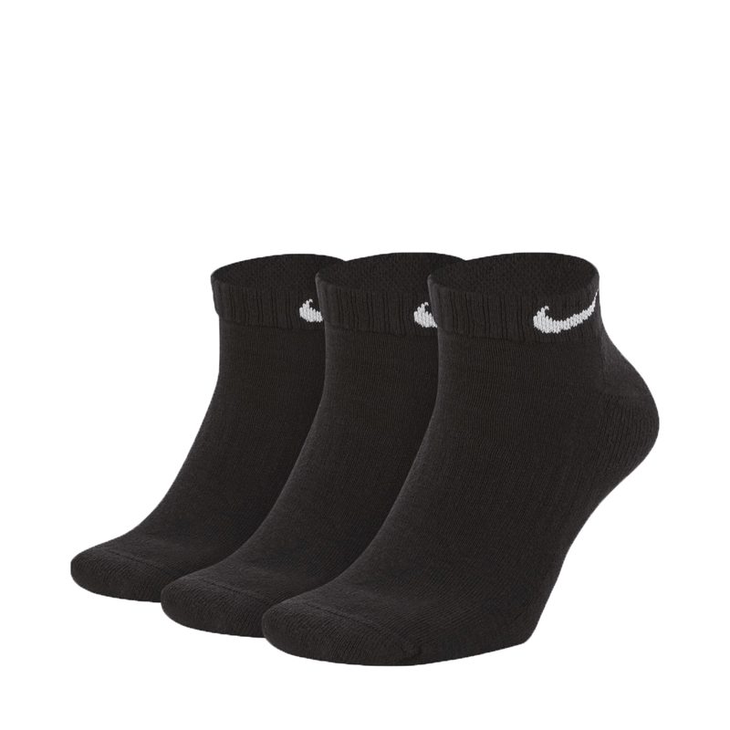 Nesse kit, são 3 pares de meias, todas iguais na cor preta. Ótima para o dia a dia e para o treino, a meia conta com tecnologia Dri-Fit que ajuda a manter os pés secos durante o e a espessa sola de tecido felpudo proporciona maior conforto e absorve o impacto. Garanta o seu kit!