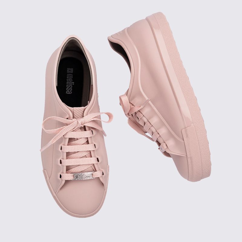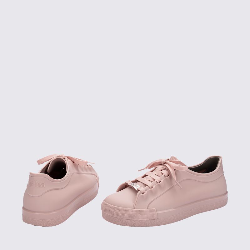 Produzido em Melflex, o material flexível, hipoalergênico e 100% reciclável da Melissa, o sneaker apresenta um acabamento fosco que confere uma estética clean e contemporânea. Projetado para ser extremamente leve e confortável, ele abraça os pés suavemente, permitindo o uso prolongado sem causar cansaço, mantendo o clássico aroma de chiclete que é marca registrada do modelo.