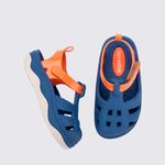 Feita em Melflex, material exclusivo da Melissa, esta sandália garante conforto, flexibilidade e durabilidade para o dia a dia das crianças. A combinação de cores azul e laranja, com acabamento fosco, confere um visual alegre e cheio de personalidade, seguindo a tendência da moda infantil.