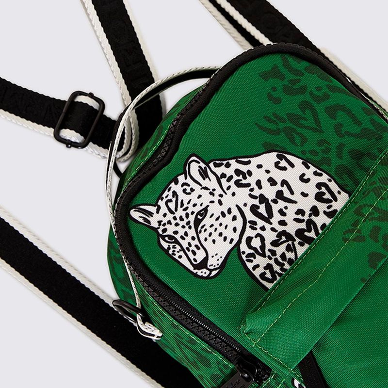 O design da Mini Mochila Borogodó se destaca por seu formato compacto e charmoso, ideal para carregar o essencial, como celular, carteira e chaves. A estampa "Onça Urbana" traz uma releitura moderna e colorida da clássica onça, com tons de verde predominantes, conferindo um toque ousado e único. O material em Poliester garante que a mochila seja leve, resistente e fácil de limpar. Com seu volume de 3 Litros, ela oferece o espaço ideal para pequenos objetos. As alças de ombro ajustáveis garantem conforto e praticidade no transporte diário.