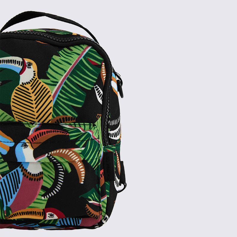 A Mini Mochila Farm Borogodó Tucanos e Folhagens é a prova de que os melhores perfumes — e os melhores estilos — vêm nos menores frascos. Confeccionada em Poliéster de alta resistência na cor Preto, ela serve como o fundo perfeito para destacar a estampa tropical de tucanos, apresentando um acabamento Estampado que carrega todo o "borogodó" e a natureza vibrante da Farm.