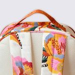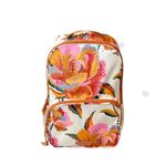 O design da Mochila Me Leva se destaca por seu formato clássico e funcional, ideal para carregar livros, notebooks e itens essenciais. A estampa "Floral Lucia" traz um visual alegre e cheio de grafismos e flores vibrantes sobre o fundo branco, conferindo um toque moderno e único. O material em Poliester garante que a mochila seja leve, resistente e fácil de limpar. Com seu volume de 15 Litros, ela oferece um compartimento principal amplo e bolsos práticos. As alças de ombro são ajustáveis e garantem conforto e praticidade no transporte diário.