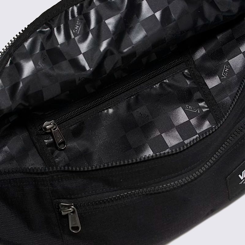 A Pochete Vans Ward Cross Body Pack Black Ripstop VN0A2ZXX6Z é a escolha definitiva para quem busca máxima resistência e um visual urbano autêntico. Confeccionada em Cordura — um material de alta performance reconhecido mundialmente pela sua durabilidade e resistência a rasgos e abrasões — na cor Preto, esta peça apresenta um acabamento Fosco técnico que reforça o DNA Off The Wall da Vans.