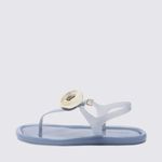 Confeccionada em PVC de alta qualidade, a sandália oferece durabilidade e um visual autêntico. A cor azul (Selo Denim), vibrante e cheia de personalidade, é fácil de combinar com diversas roupas, enquanto o acabamento brilhante e o detalhe do selo adicionam um toque de brilho e destaque.