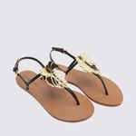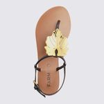 Confeccionada em material sintético de alta qualidade, a sandália oferece durabilidade e um visual autêntico. A cor preta, neutra e elegante, é fácil de combinar com diversas roupas, enquanto o acabamento metalizado sutil na folha adiciona um toque de brilho e destaque.