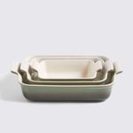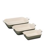 O Set de 3 Travessas Retangulares Le Creuset Heritage na cor Verde é o conjunto definitivo para quem busca versatilidade e elegância do forno à mesa. Inspirado no design clássico francês, este conjunto oferece três tamanhos diferentes, ideais para preparar desde acompanhamentos delicados até assados robustos, garantindo uma distribuição de calor uniforme e um toque de requinte incomparável à sua cozinha.