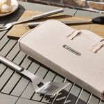 Fabricados em aço inox de alta qualidade, os utensílios são compatíveis com diversas fontes de calor, incluindo indução e forno, tornando-os ideais tanto para a cozinha doméstica quanto para o uso em acampamentos sofisticados. O diferencial deste set é a sua bolsa exclusiva para transporte e armazenamento, garantindo total praticidade e organização. Resistentes e fáceis de limpar, podem ser levados à lava-louças, oferecendo a funcionalidade premium que só a Le Creuset proporciona.
