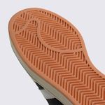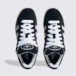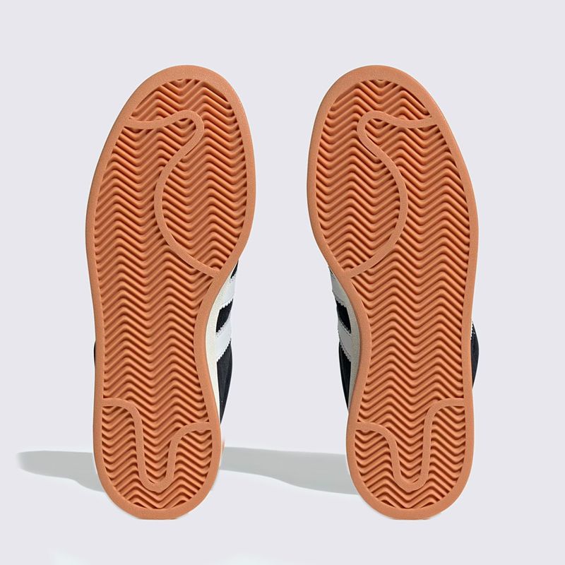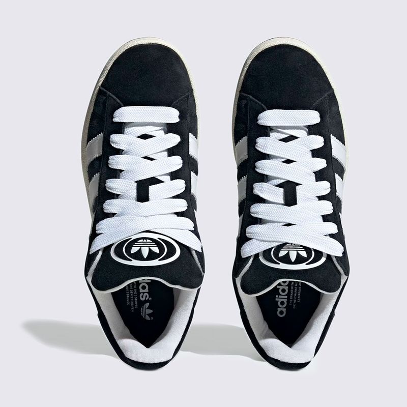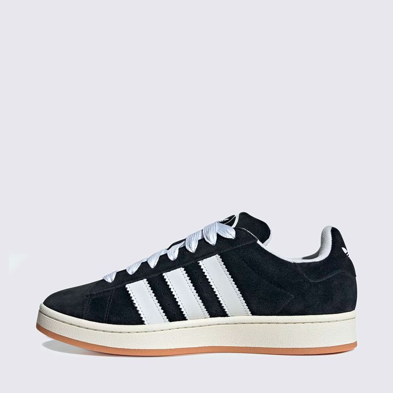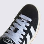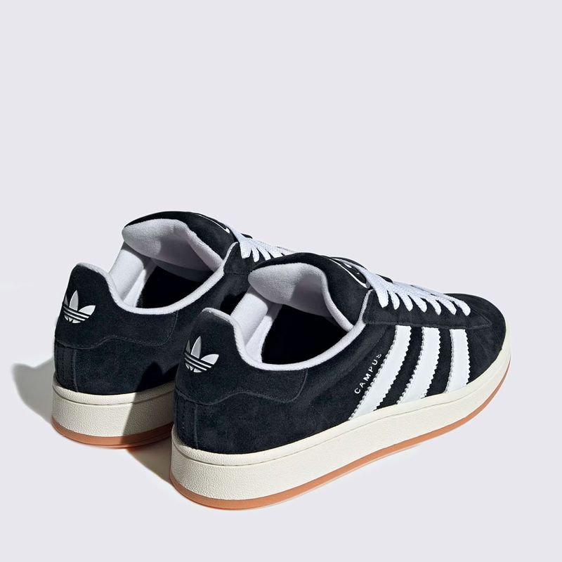 Confeccionado em uma combinação de couro premium e forro em moletinho, o Campus 00S oferece durabilidade, um visual texturizado e conforto extra. A cor preta (Core Black) com listras brancas (Cloud White) confere uma estética clean e versátil. O acabamento é complementado pelo solado de borracha, mais largo e robusto, que garante aderência e o visual característico da virada do milênio.