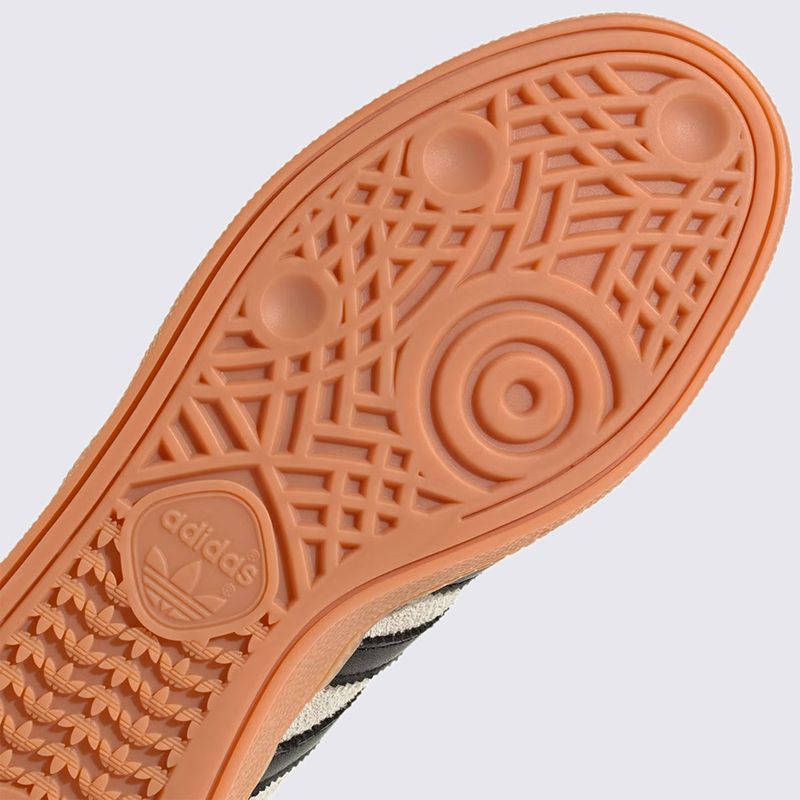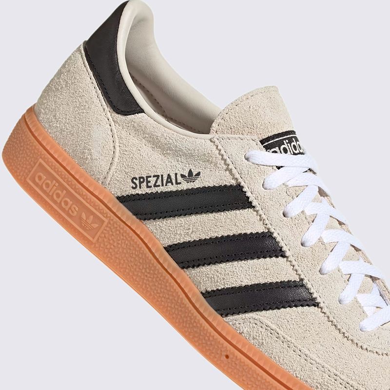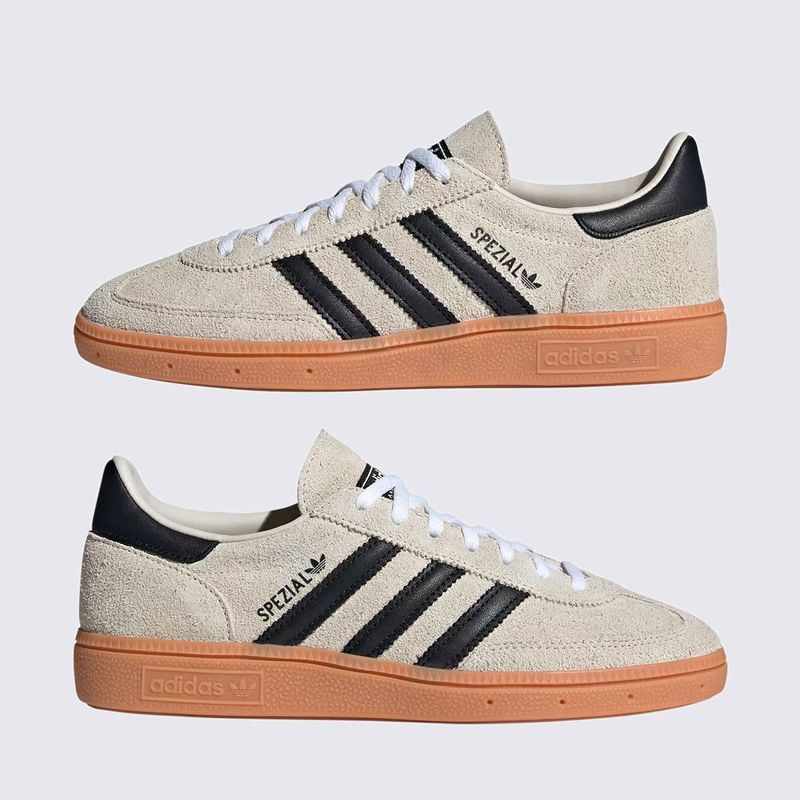 Confeccionado com uma combinação de couro e suede, o Handball Spezial oferece durabilidade e um toque premium e texturizado. A cor cinza (Alumina) com detalhes em preto e branco confere uma estética neutra e sofisticada, que garante máxima versatilidade. O acabamento é completado pelo icônico solado de borracha de cor caramelo (Gum), que garante aderência e o visual característico do modelo.