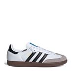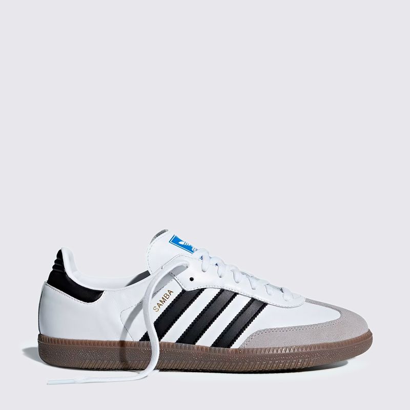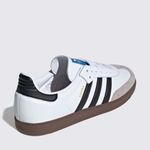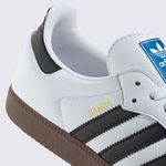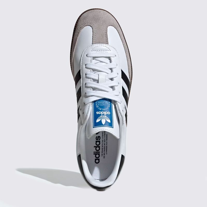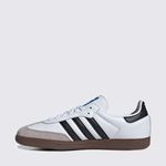 Confeccionado em couro de alta qualidade, o Samba OG oferece durabilidade e um toque premium. A cor branca (Cloud White) com detalhes em preto confere uma estética clean e sofisticada. O acabamento é completado pelo icônico solado de borracha de cor caramelo, que garante aderência e o visual característico do modelo.
