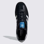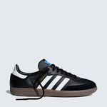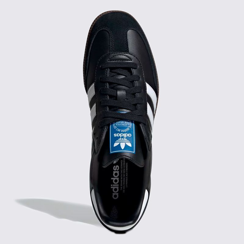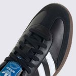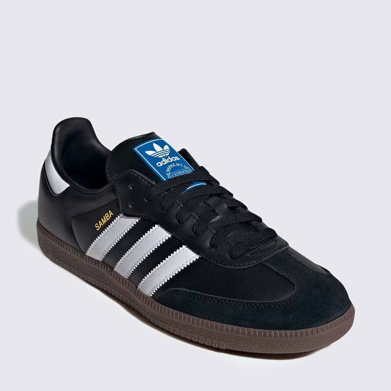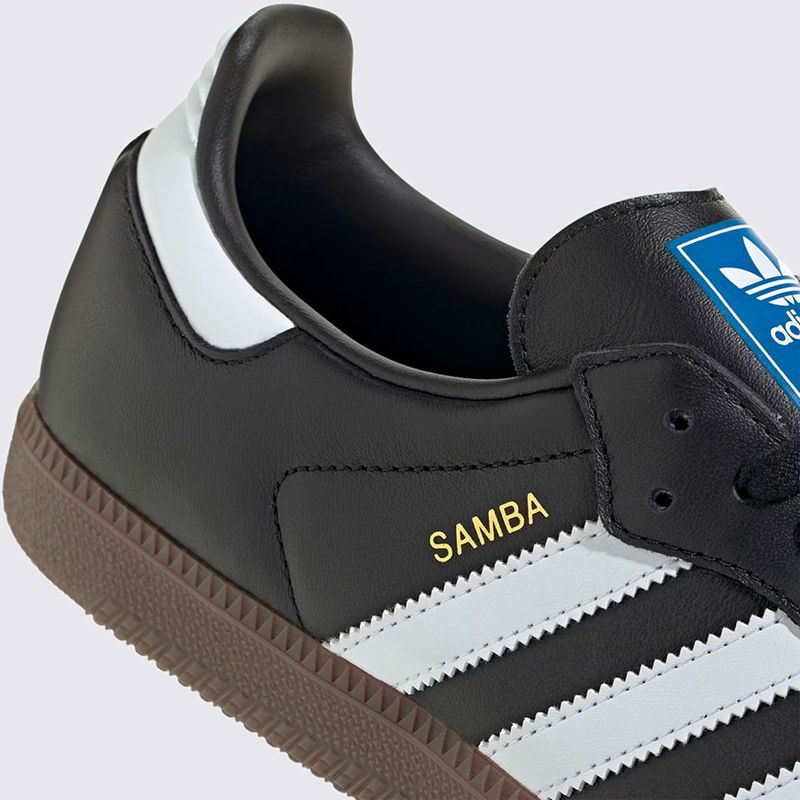 Confeccionado em couro de alta qualidade, o Samba OG oferece durabilidade e um toque premium. A cor preta (Core Black) com detalhes em branco (Cloud White) confere uma estética clean e sofisticada. O acabamento é completado pela entressola de goma de borracha de cor caramelo (Gum), que garante aderência e o visual característico do modelo.