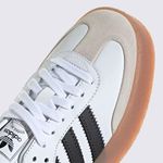 O Tênis Adidas Sambae Branco JI1349 é a versão moderna e ousada do clássico Samba, perfeito para quem busca um visual fashion, conforto e um design que eleva a silhueta. Este modelo é um destaque na moda urbana, com uma estética feminina e contemporânea.