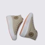 O Tênis Chuck Taylor All Star Move Bege Claro Ouro Branco CT16220001 é inspirado em um dos modelos icônicos lançados pela Converse nos anos 70, trazendo um visual moderno com toques vintage. Seu design cano alto e plataforma, combinado com detalhes sofisticados, transforma este modelo em um verdadeiro destaque.