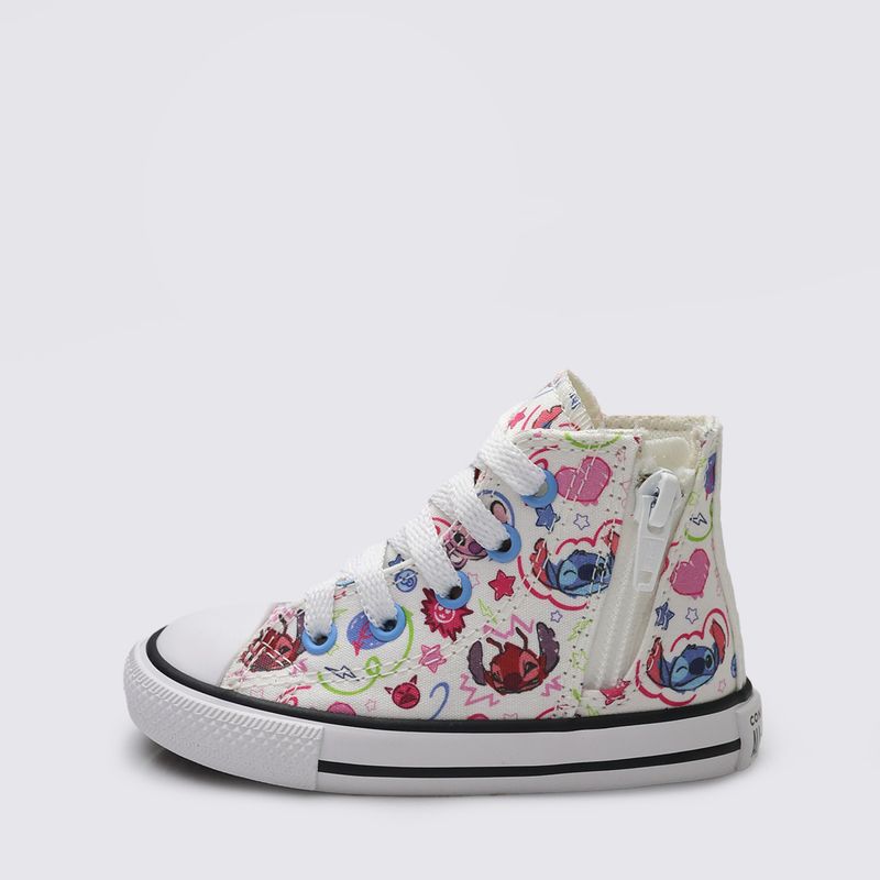 Confeccionado em lona resistente, o Converse All Star Infantil Side Zip oferece durabilidade e conforto para os pezinhos. A cor branca, combinada com detalhes em preto no acabamento estampado, cria um visual versátil e cheio de estilo. O zíper lateral facilita o calce, tornando o dia a dia das mamães e bebês muito mais prático.