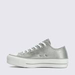 O TĂȘnis Converse All Star Chuck Taylor Lift Prata Opaca Branco Prata CT31490003 Ă© a escolha perfeita para quem busca um clĂĄssico da Converse com um toque de estilo, altura e brilho. Com seu icĂŽnico design de cano baixo e uma plataforma que eleva o visual, ele Ă© ideal para compor looks casuais e cheios de personalidade.