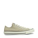 Confeccionado em lona de alta qualidade, o tênis apresenta-se em uma base bege suave, harmonizada com detalhes em marfim e preto através de um acabamento estampado sutil e diferenciado. Essa paleta de cores "amêndoa" confere uma estética moderna e acolhedora ao design icônico da Converse, permitindo composições atemporais que se adaptam perfeitamente a diferentes estilos e ocasiões.