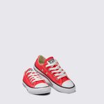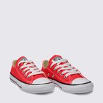 Com cano baixo e cabedal em lona vermelha, ele oferece leveza e resistência para acompanhar a rotina das crianças. Sua entressola branca, decorada com detalhes em preto, reforça o design icônico da Converse.