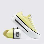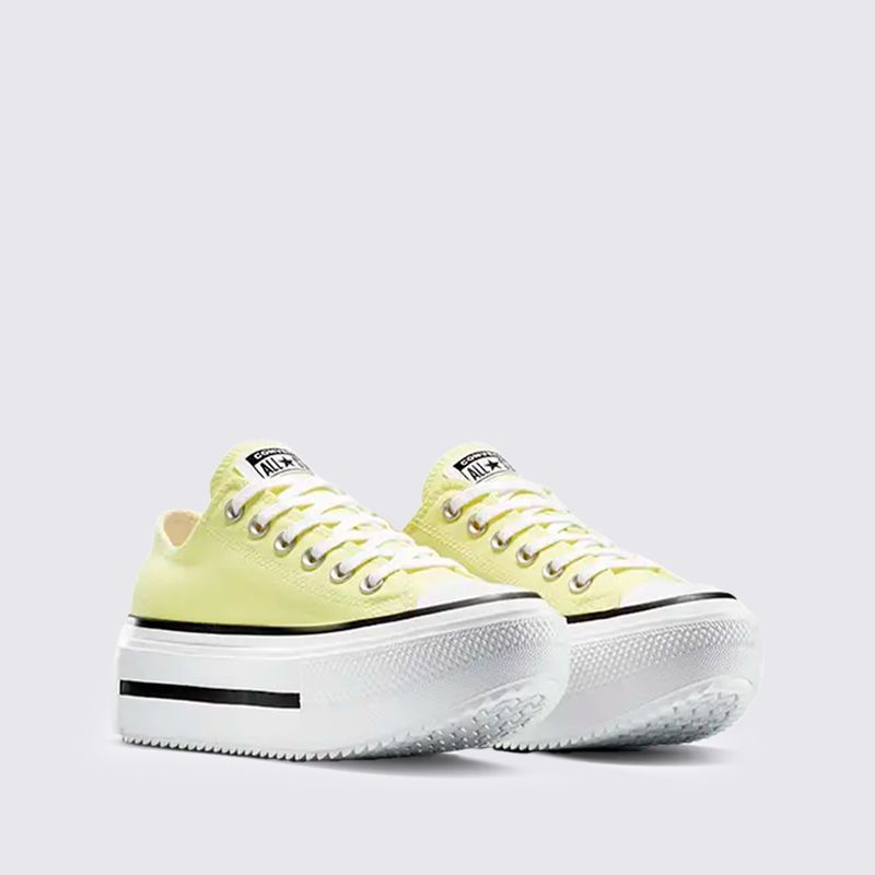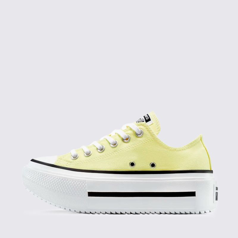 Confeccionado em lona resistente, o Converse Chuck Taylor All Star Lift Double Stack oferece durabilidade e conforto para o uso diário. A cor amarela "Lemon Slush", marcante e cheia de energia, facilita a combinação com diversas peças, enquanto o acabamento fosco mantém a essência casual do modelo.