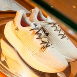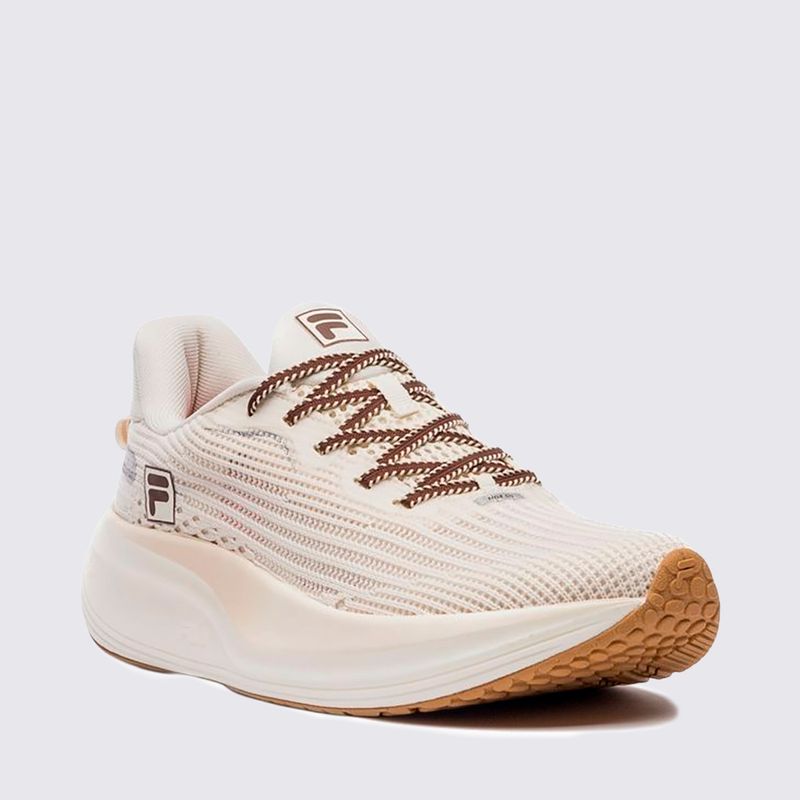 Construído com materiais tecnológicos, o calçado apresenta cabedal em sintético de alta resistência com acabamento têxtil respirável, garantindo ventilação constante e leveza a cada passada. A cor bege confere um visual orgânico e refinado, permitindo combinações versáteis com paletas de cores neutras ou looks esportivos monocromáticos.