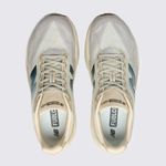O cabedal é confeccionado em material têxtil de engenharia avançada, proporcionando uma respirabilidade superior e um ajuste leve que parece uma segunda pele. A cor bege traz uma proposta sofisticada e moderna, oferecendo um visual neutro e elegante para o público que não abre mão do estilo, mesmo durante os treinos mais intensos.
