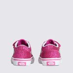 Confeccionado em lona resistente, o Vans Old Skool V oferece durabilidade e um visual autêntico. A cor rosa (Raspberry Rose) vibrante, com o acabamento glitterizado, adiciona um toque de glamour e magia, tornando-o ainda mais irresistível. A clássica sidestripe em branco completa o design.