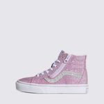 O Tênis Vans SK8-HI Side Zip Kids Glitter Lilac Mist Purple VN000CYEEMY é a escolha perfeita para as pequenas que buscam estilo e brilho para o dia a dia. Com o design icônico do Sk8-Hi, agora com um toque mágico de glitter e a praticidade do zíper lateral, ele é ideal para compor looks casuais e cheios de personalidade no universo do Streetwear.