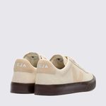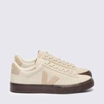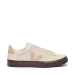 Confeccionado com materiais sustentáveis de alta qualidade, como a camurça vegana (Pierre), e o logo "V" lateral em borracha nativa da Amazônia, o Veja Campo oferece durabilidade e responsabilidade ambiental. A cor bege (Pierre Almond) é neutra e versátil, enquanto o acabamento fosco confere um toque sofisticado ao modelo. O cabedal macio garante conforto e um visual clean.