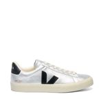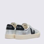 Confeccionado com materiais sustentáveis, incluindo couro sustentável e solado de borracha amazônica, o Veja Campo oferece durabilidade e um visual premium. A cor prata, com o logo "V" lateral em preto, cria um contraste marcante e versátil, fácil de combinar com diversas peças do seu guarda-roupa, garantindo um visual clean e contemporâneo. O acabamento metalizado confere uma estética moderna e elegante.