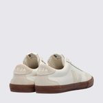 Produzido com material sustentável de alta qualidade, o modelo apresenta um corpo em couro premium com acabamento em camurça nos detalhes estratégicos, garantindo um contraste de texturas que eleva o design. A cor branca predominante é harmonizada com os tons Natural e Bark (terrosos), criando uma paleta neutra e atemporal que facilita infinitas combinações no guarda-roupa feminino.