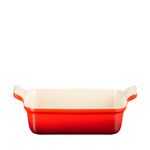 A Travessa Retangular Heritage da Le Creuset é uma adição indispensável na cozinha, perfeita para ir do forno diretamente à mesa com elegância. Seja para assar sobremesas deliciosas, vegetais crocantes, marinar carnes saborosas, armazenar sobras ou preparar pratos mais elaborados, suas paredes laterais profundas e capacidade generosa são ideais para lazanhas com molho borbulhante em camadas. Feita com cerâmica premium, esta travessa assegura que os alimentos sejam preparados uniformemente e com perfeição. Além disso, seu esmalte colorido não só adiciona um toque de cor à sua mesa, mas também possui propriedades praticamente antiaderentes, facilitando a limpeza após o uso.